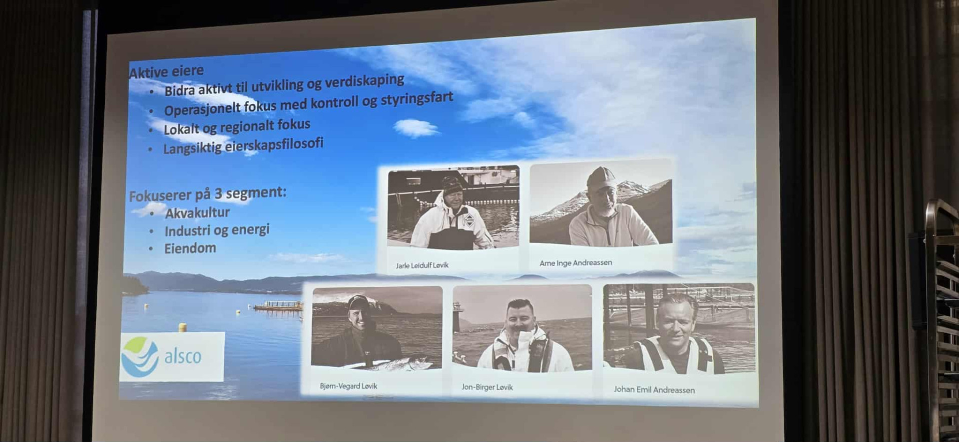 Via fiskeri og og forskningsfartøyer, videre til økologisk lakseoppdrett, har de gjennom opp- og nedturer etter hvert grunnlagt investeringsselskapet Alsco  som i dag favner både akvakultur, industri/energi og eiendomsdrift.