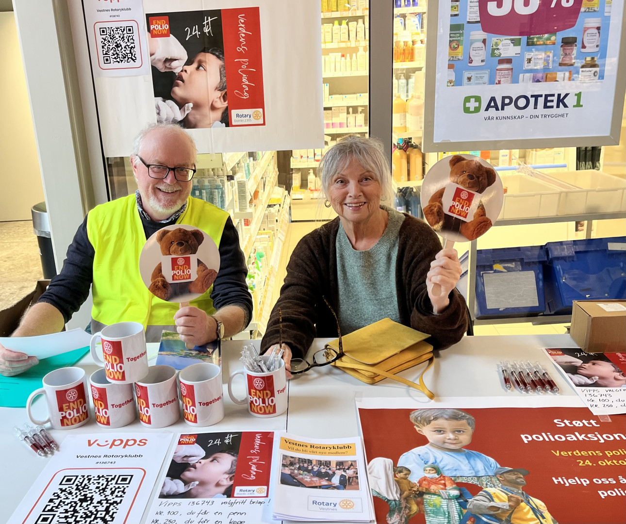I går markerte vi verdens poliodag. Vi hadde stand på Vestnes Brygge, hvor vi solgte poliopenner og kopper med poliologo. God respons og mange gode samtaler. På kvelden lyste vi opp Vestnes kirke i rødt. Vi retter en stor takk til kirkeverge Hege Haugen for lånet av Vestnes kirke, og til Øyvind Rypdal for lån av lys! Takk til alle som har bidratt til å finansiere poliovaksiner!